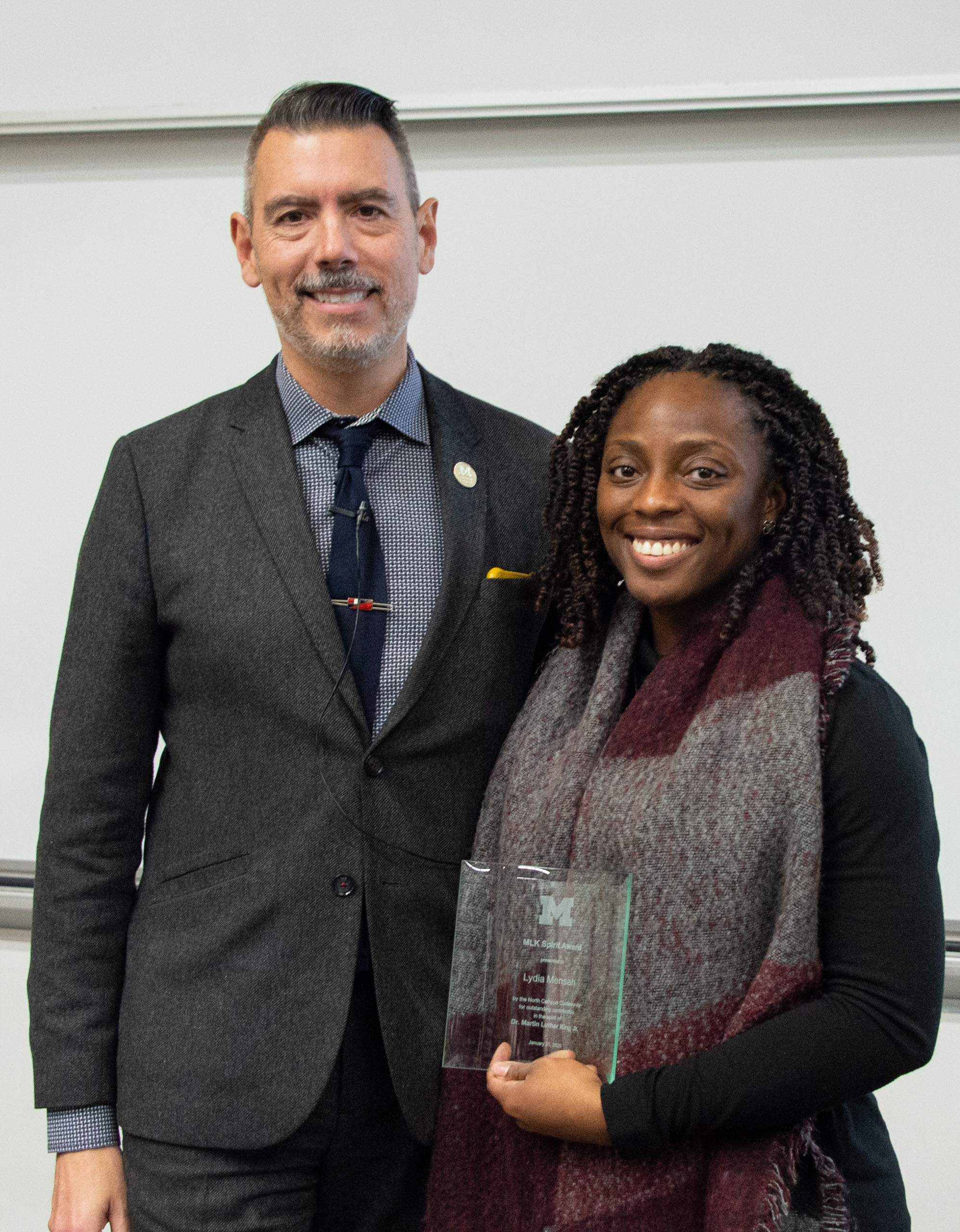 MSE is proud to announce that Ph.D. candidate Lydia Mensah won a North Campus Deans' MLK Spirit Award at a special ceremony on January 20. The MLK Spirit Award is given to students, student organizations, staff, and faculty members at the University of Michigan North Campus who exemplify the leadership and vision of Dr. King through their commitment to social justice, diversity, equity, and inclusion.