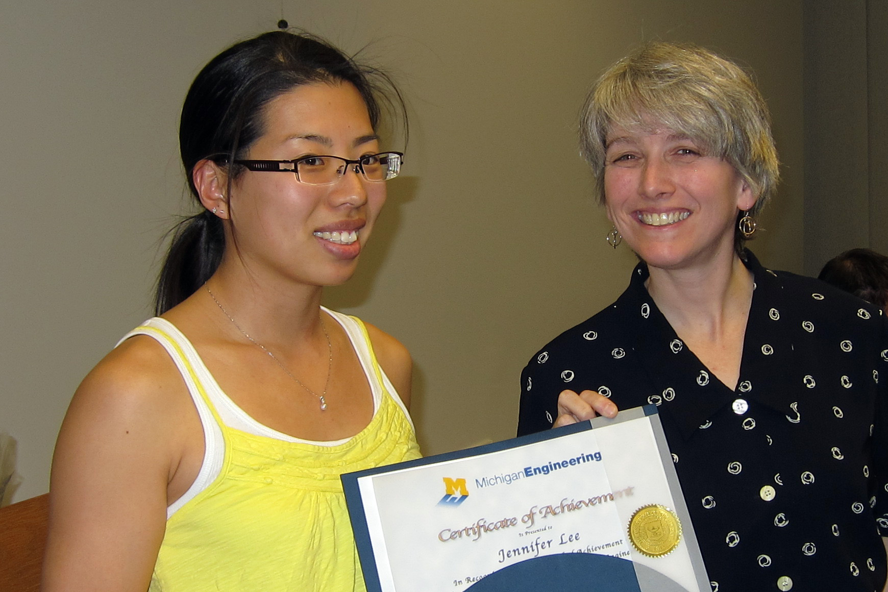 The award for "Best Overall MSE Graduate Student Instructor for 2009" was presented to Jenny Lee by Professor Rachel Goldman.
