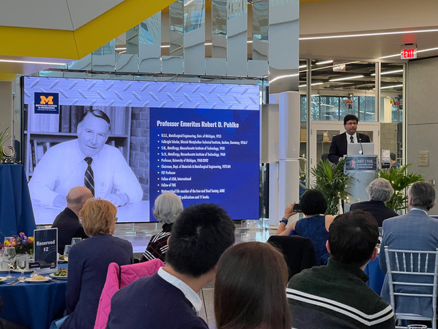 In 2017, Professor Pehlke generously endowed two gifts for MSE: the Robert D. and Julie A. Pehlke Endowed Fellowship Fund for MSE graduate students and the Robert D. Pehlke Lectureship in Materials Processing. The inaugural lectureship, which Professor Pehlke attended with his immediate family, was held September 13-14, 2018. Sadly, it was the first and only lectureship Professor Pehlke was able to attend as he passed in the Fall of 2019.