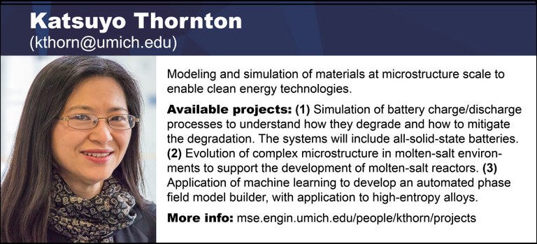 In addition, open PhD projects may change. Thus, do not hesitate to reach out to any of our faculty members (link: https://mse.engin.umich.edu/people/fac) if you are interested in their work. All of us are excited to meet and discuss opportunities.