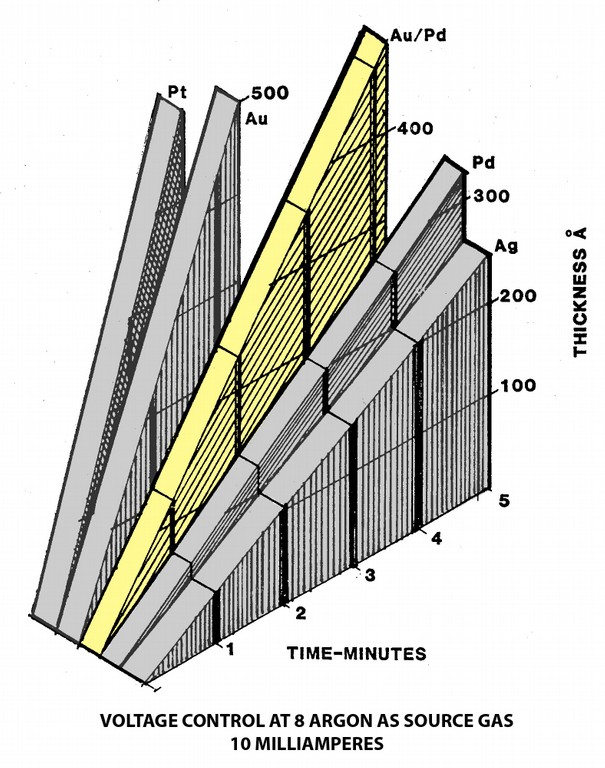 1. Voltage Control Position 7-9 Pressure 40 - 80 Millitorr (Argon) Current 10 Milliamperes